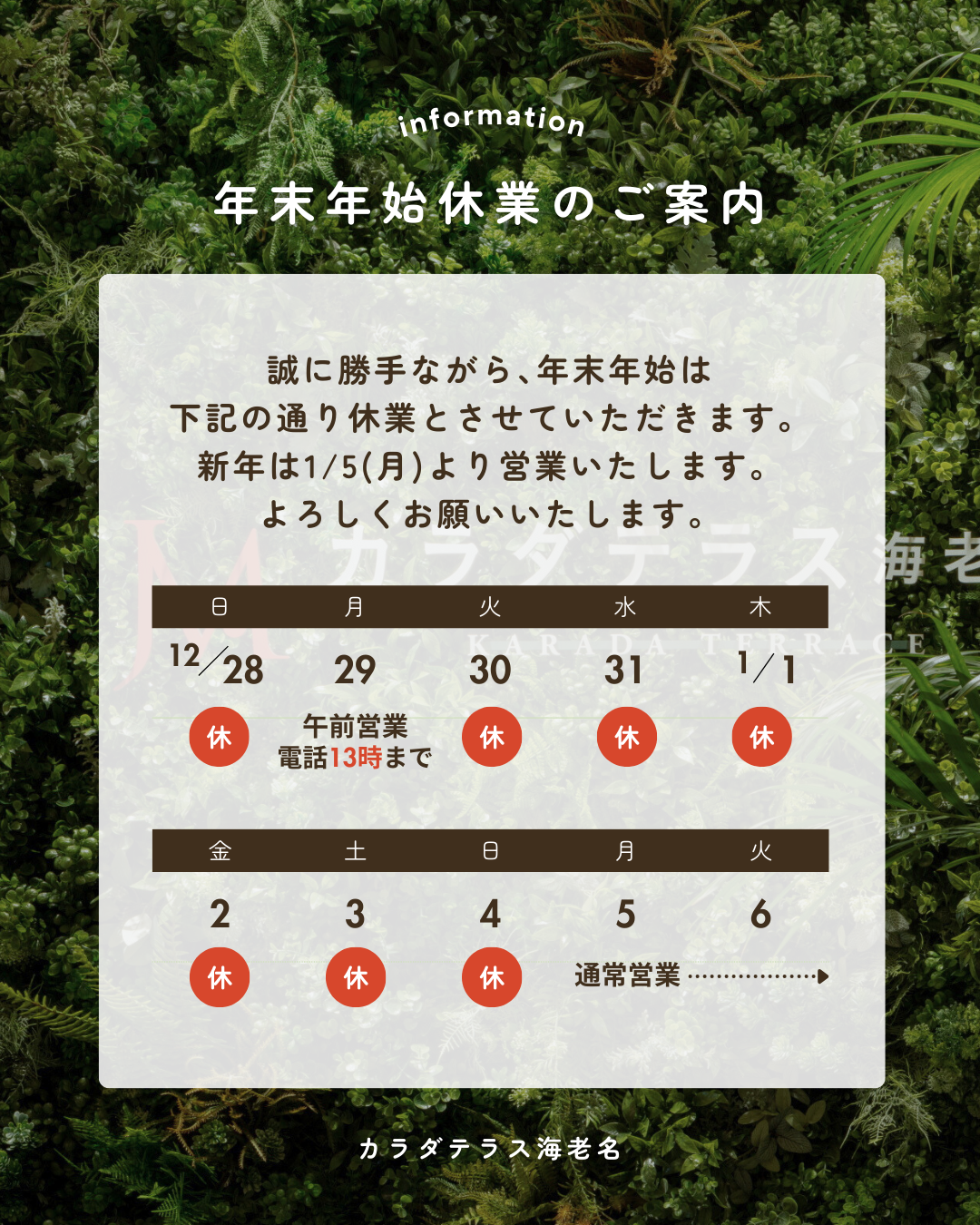 誠に勝手ながら、下記期間は年末年始休業とさせていただきます。